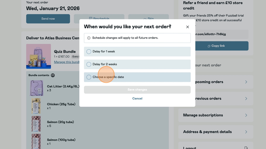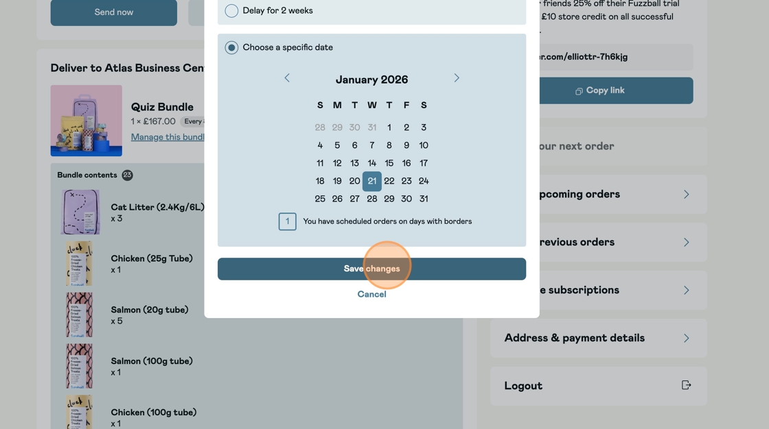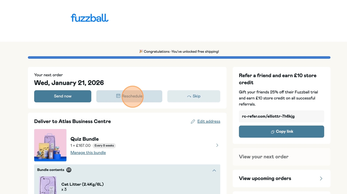 How to Reschedule My OrderUpdated a month agoVideo Guide:Step By Step Guide:Step 1:Login to your customer portal.Step 2:Click 'Reschedule'Step 3:Choose a date that works for youStep 4:Click ' Save changes' to confirm. Was this article helpful? YesNo